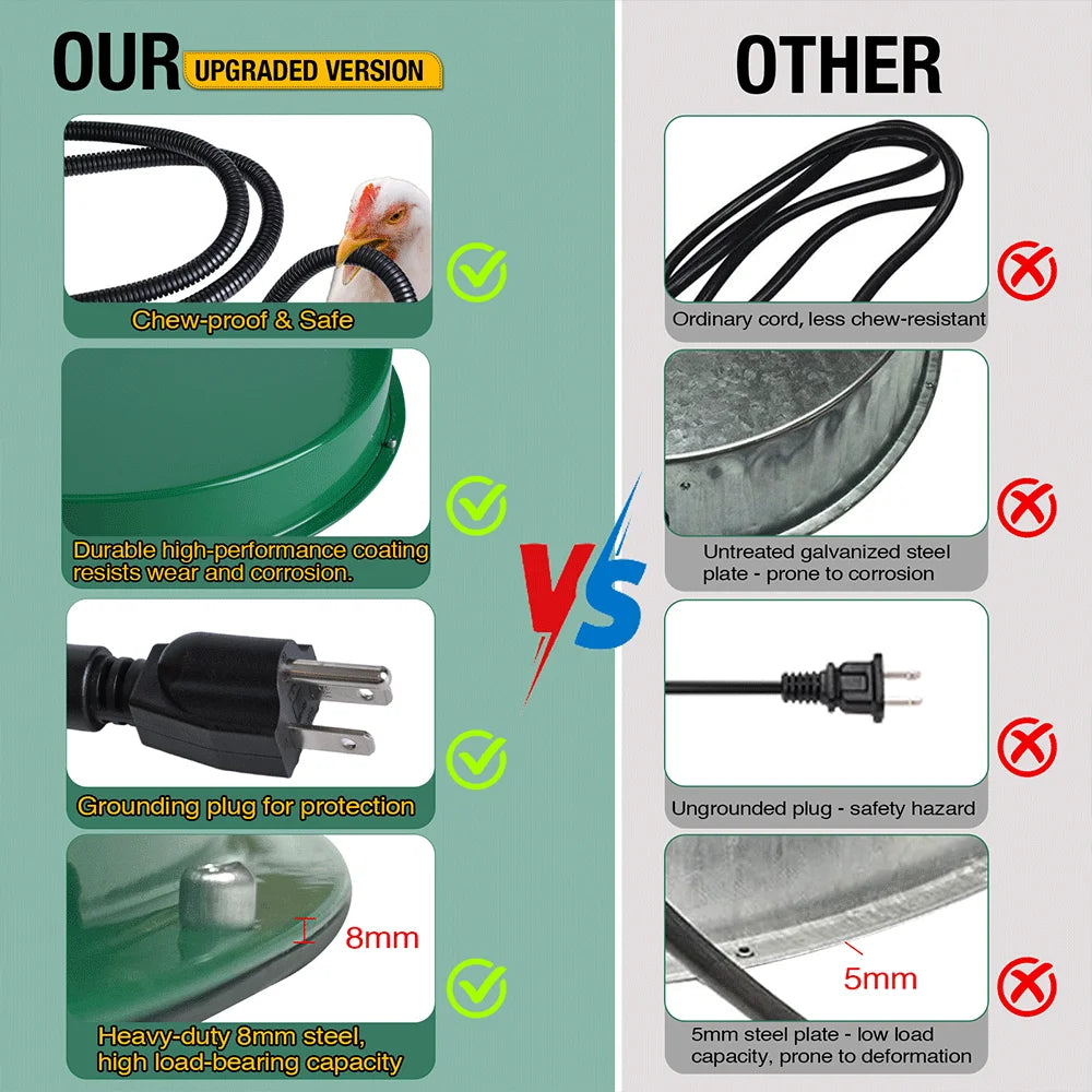 - Fits metal & plastic waterers – 12.4 in (31.4 cm) heated base accommodates 1–5 gallon waterers, offering versatile compatibility for coops and backyard setups.