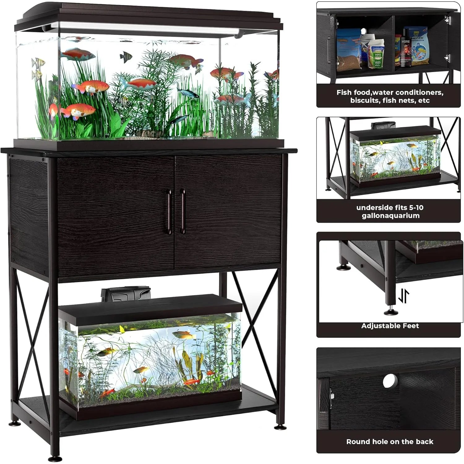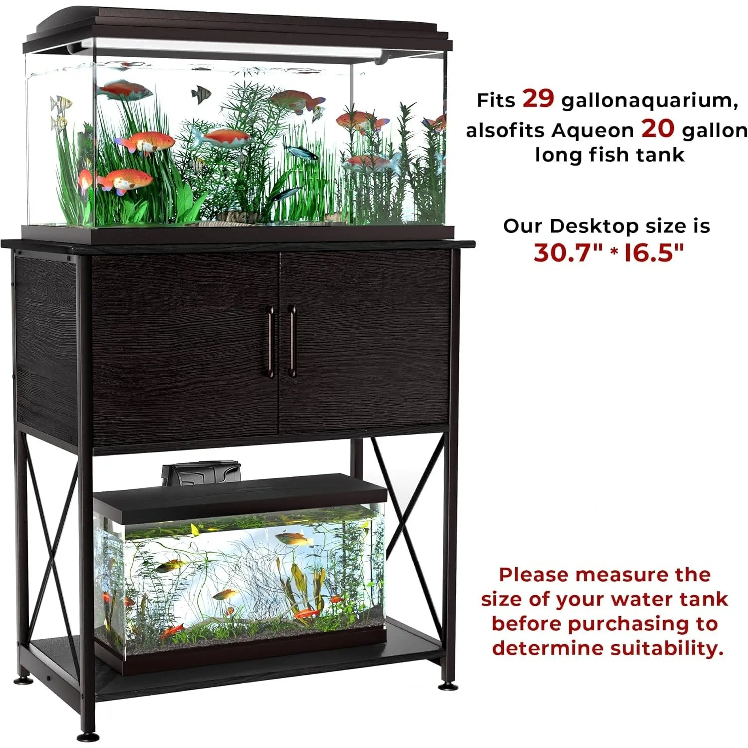 20 to 29 Gallon Aquarium Stand Metal Frame Fish Tank Stand with Cabinet Storage for 20 Gallon Long Aquarium