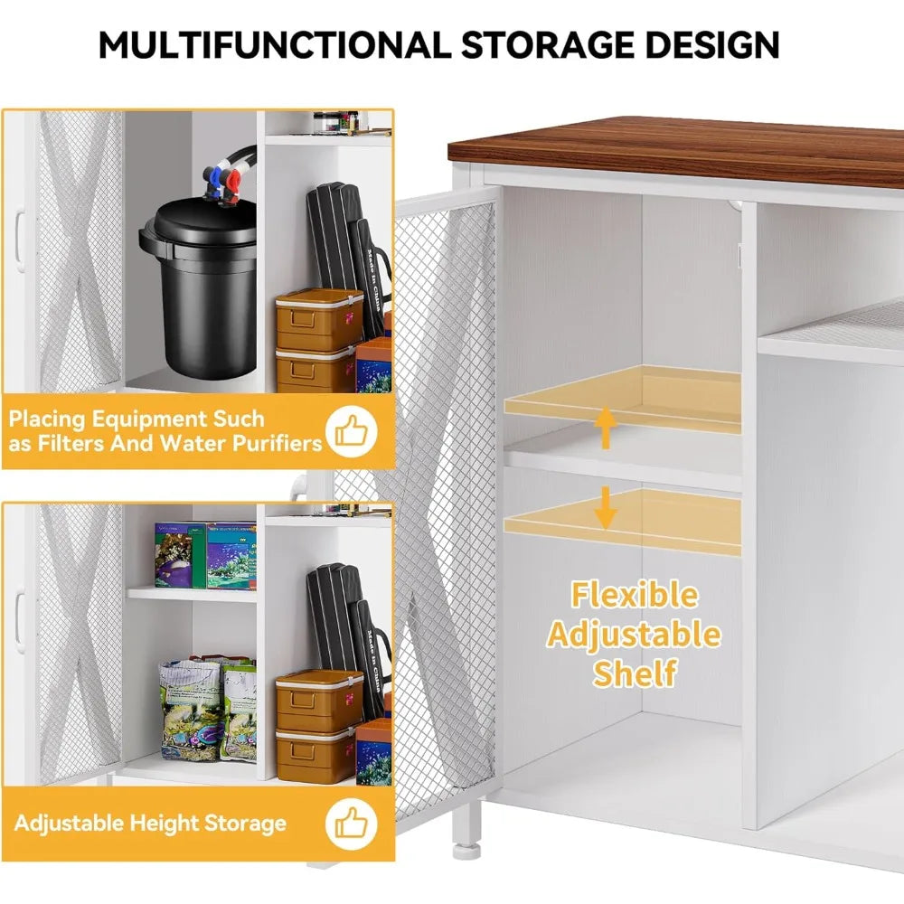 - Organized storage: Built-in cabinet stores fish food, cleaning tools, and accessories; adjustable shelves fit items of varying sizes.