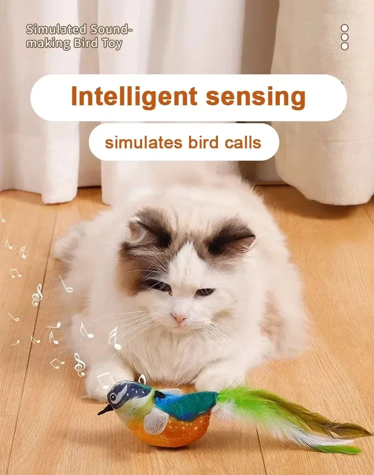 Bird-Shaped Cat Toy Interactive Toys Dog Rechargeable Chirping Flapping Bird Catnip Touch Activated Squeak Plush Toy Pet