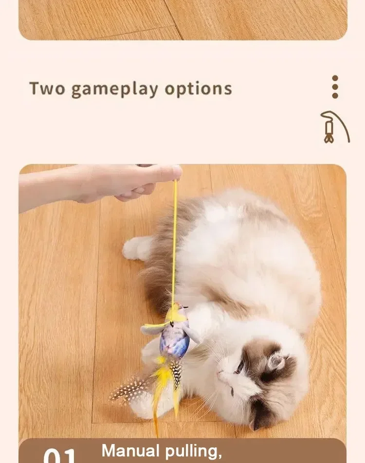 2. 3 mode Realistic swinging wings with real bird melody to awaken the hunting instinct of cats.