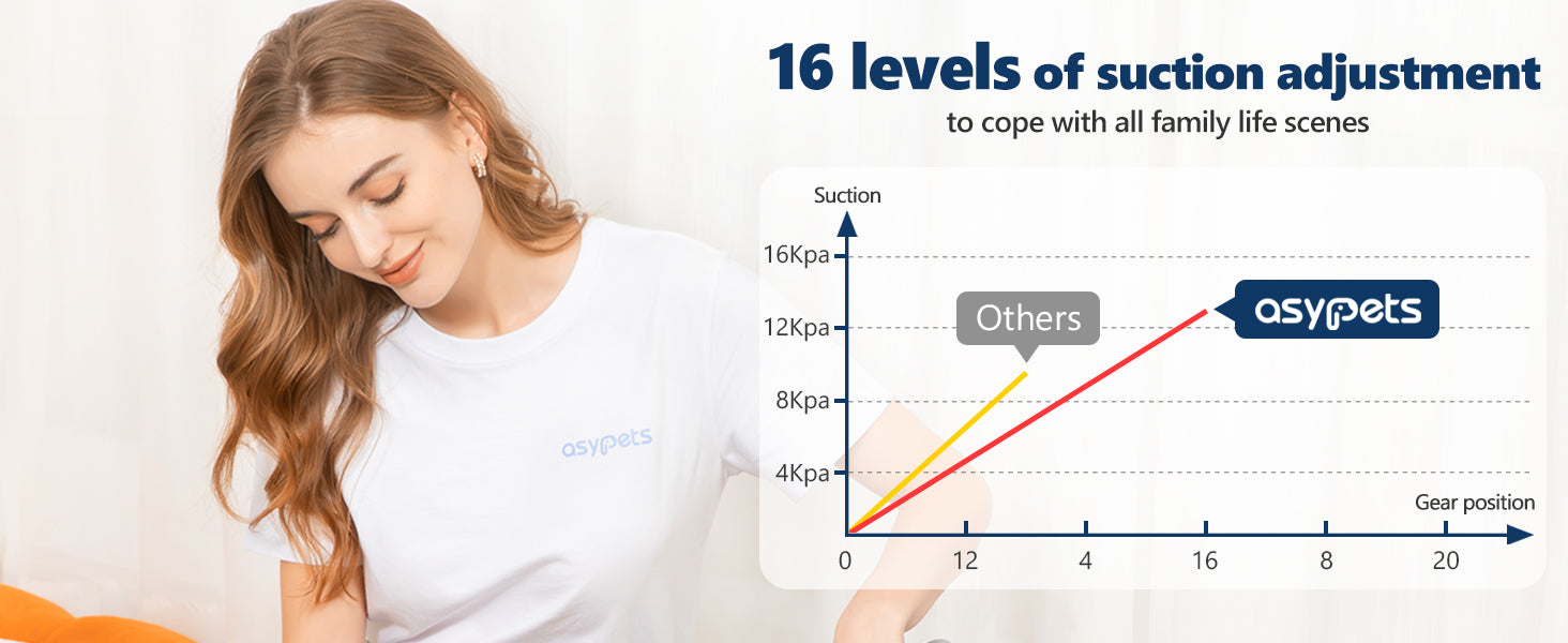 - 16 Levels of Suction Adjustment: With a powerful suction of 13.4Kpa, you can easily choose from 16 different settings to effectively collect up to 99% of pet hair, making cleanup a breeze.