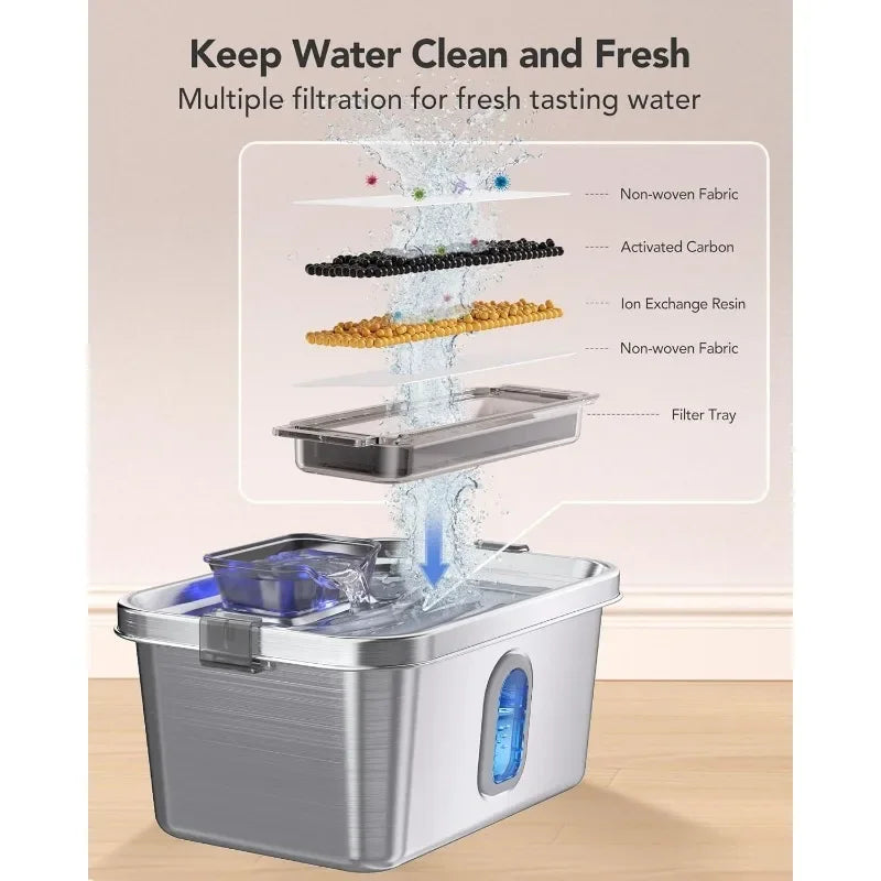 - Multi-Layer Filtration: Enjoy purified water with our advanced filtration system that removes impurities, making hydration appealing for your pets.