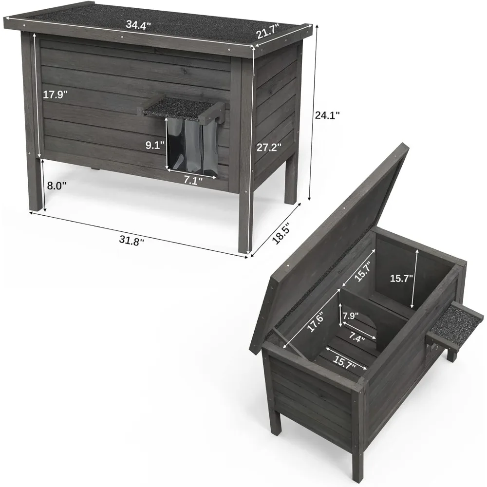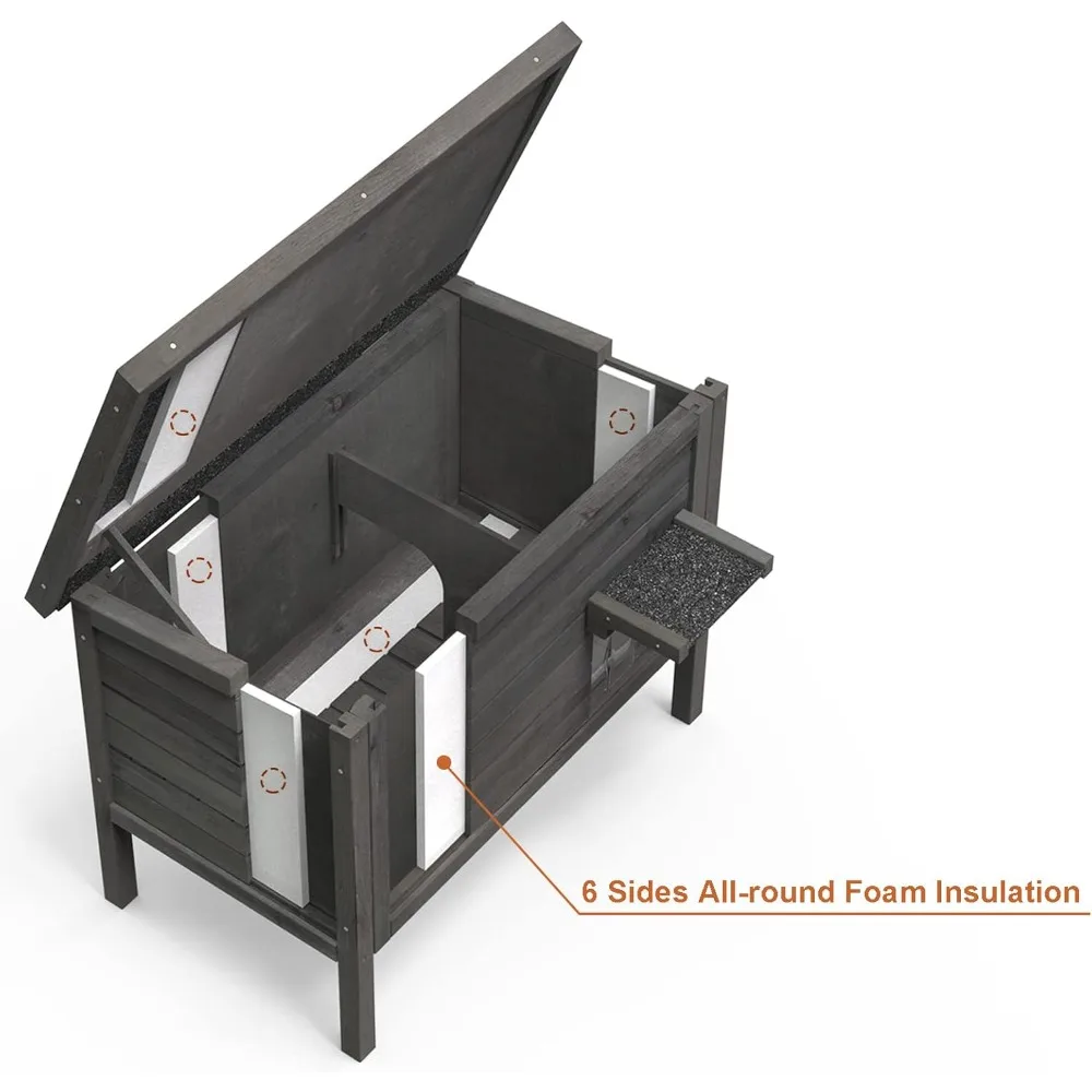 - 【Protect your pets against bad weather】: The wooden outdoor cat house is leak-proof and the waterproof base is elevated off groundup to 8 inches. The roof is slanted so rainfall will not sit on top. It will survive in heavy rain/snow to keep the cat warm and dry inside.