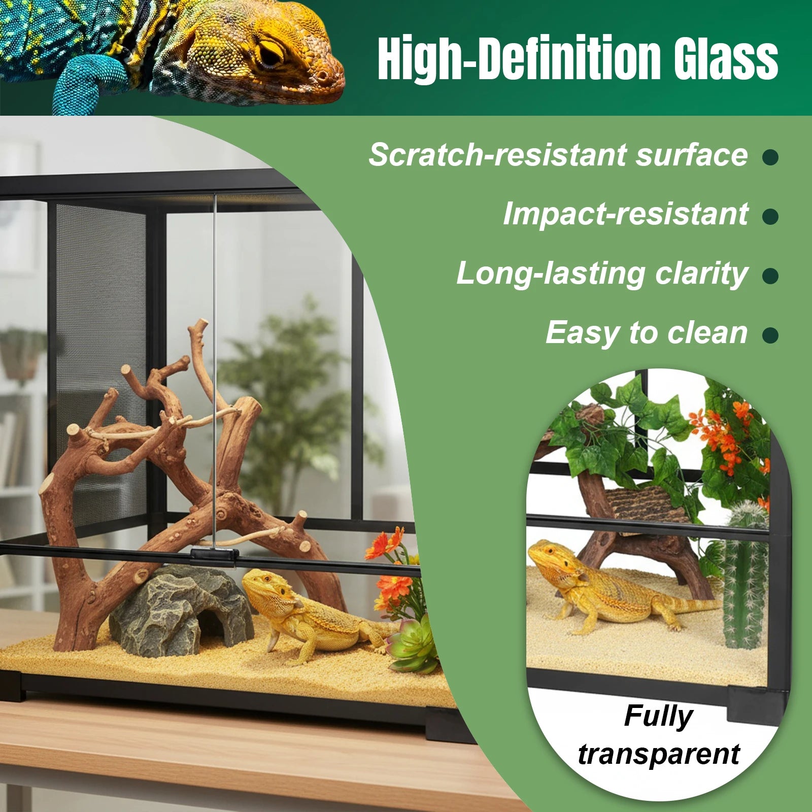 Glass Terrarium Front Reptile Tank With Top Screen Ventilation Escape Proof Lid