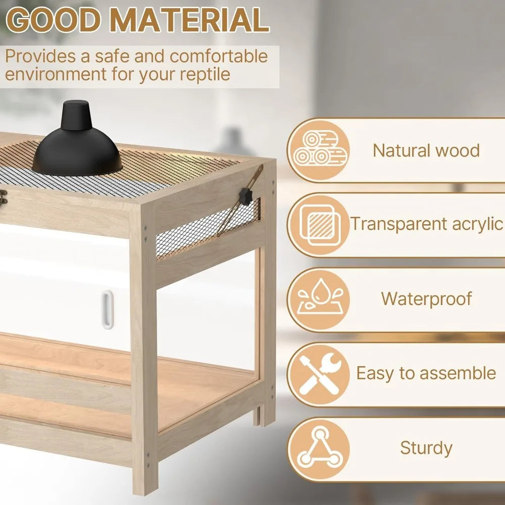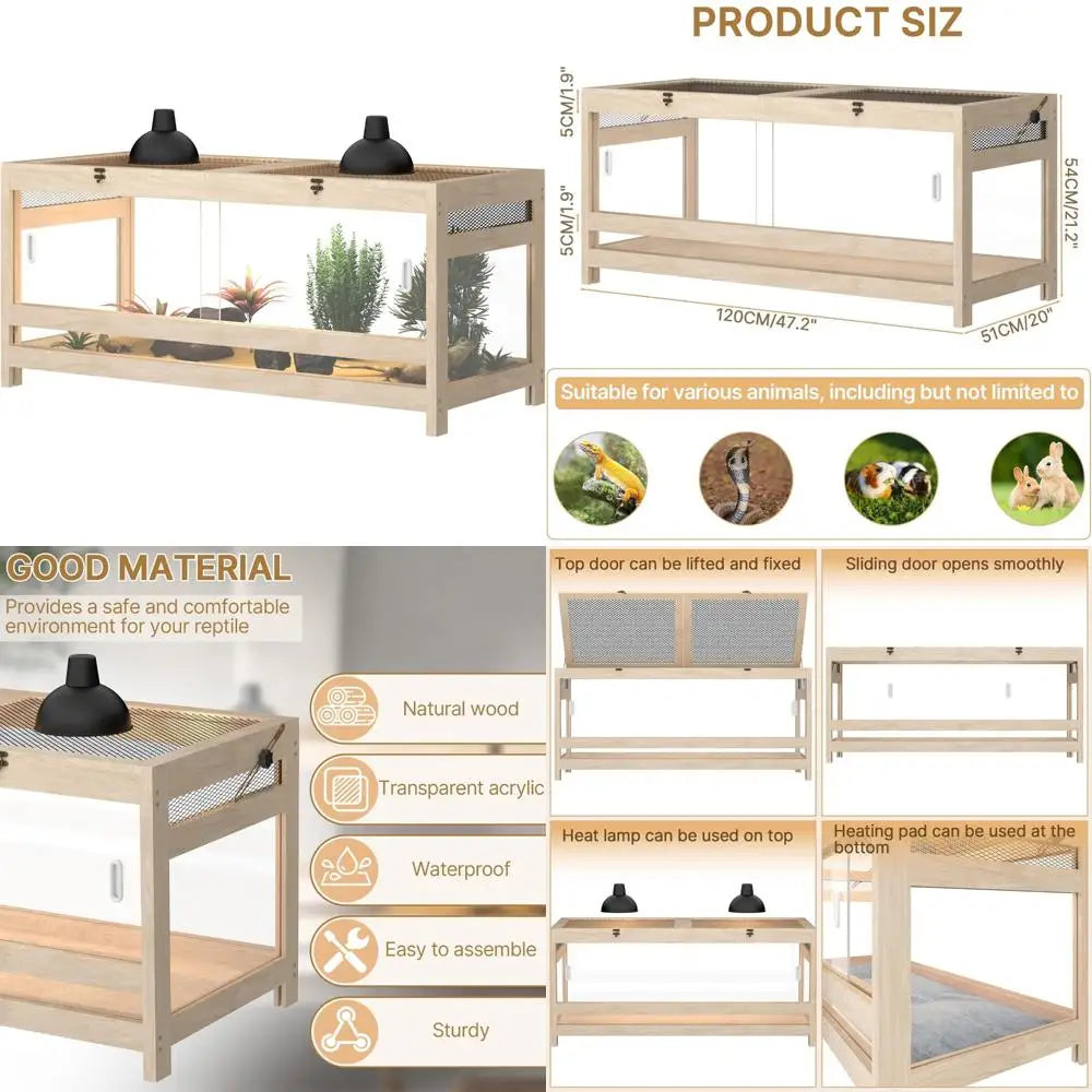 - Versatile habitat ideal for bearded dragons, snakes, geckos, and other large reptiles, blending style, function, and comfort for both pets and their keepers.
