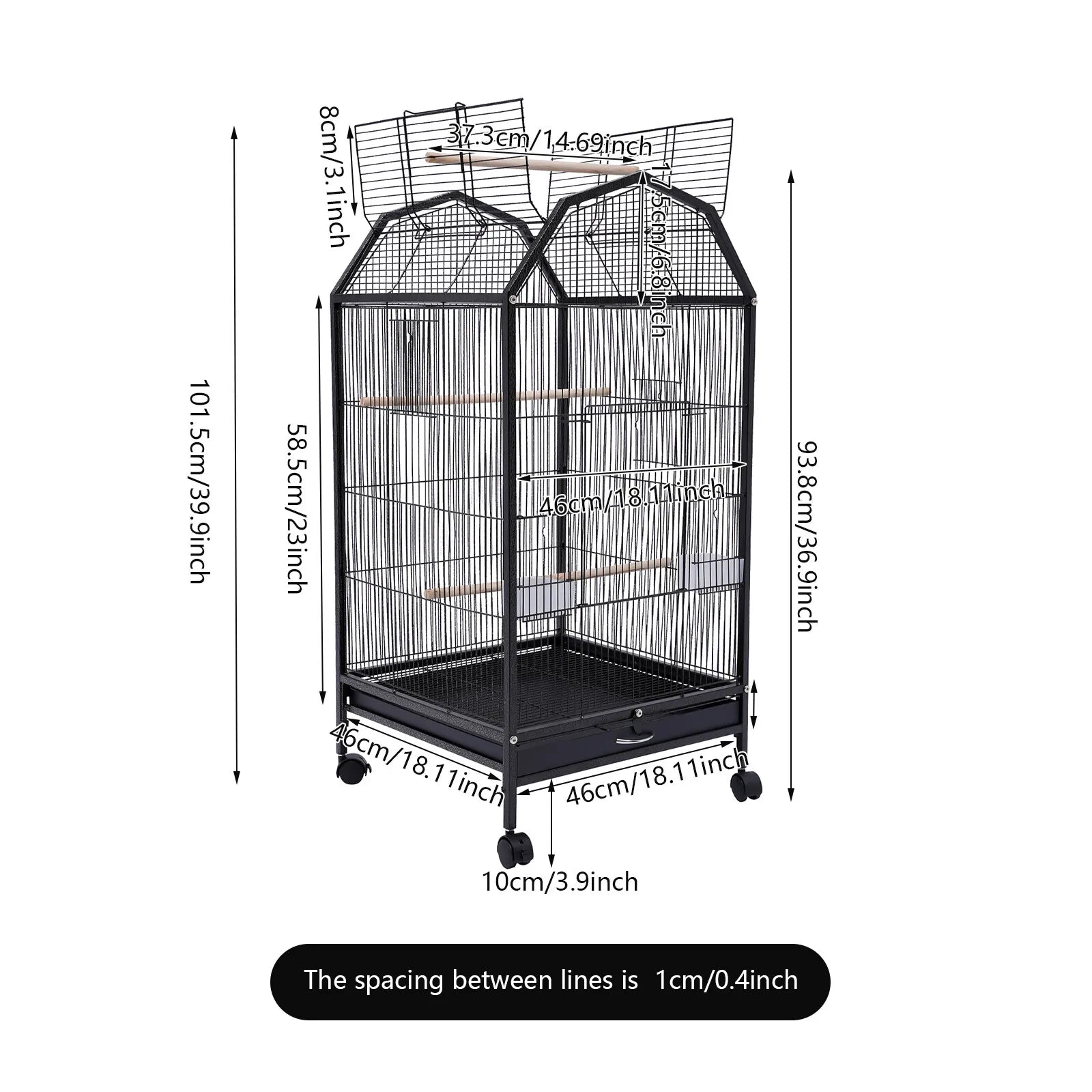 - Spacious Habitat: A generous footprint of 18.11" x 18.11" with a height of 39.9" gives birds ample room to stretch, flap, and explore.