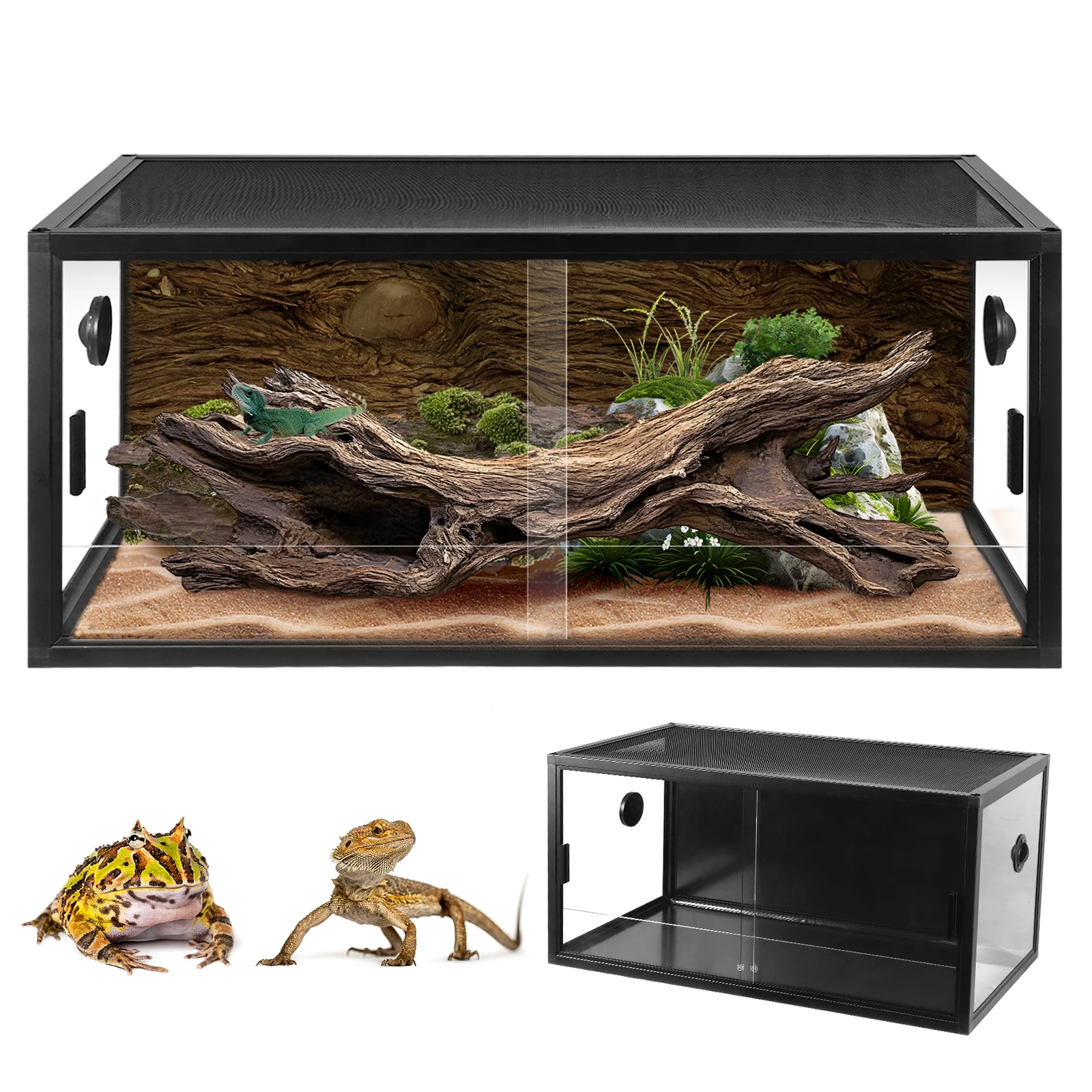 Reptile Breeding Box Front Opening Climbing Pet Landscaping Tank With Ventilation Black 90x45x45cm