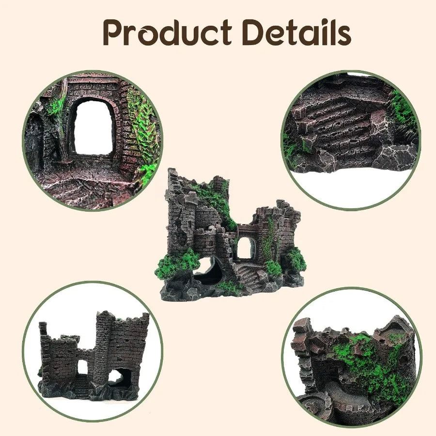 Reptile Resin Castle Decoration For Bearded Dragon Habitat Crested Gecko Vine