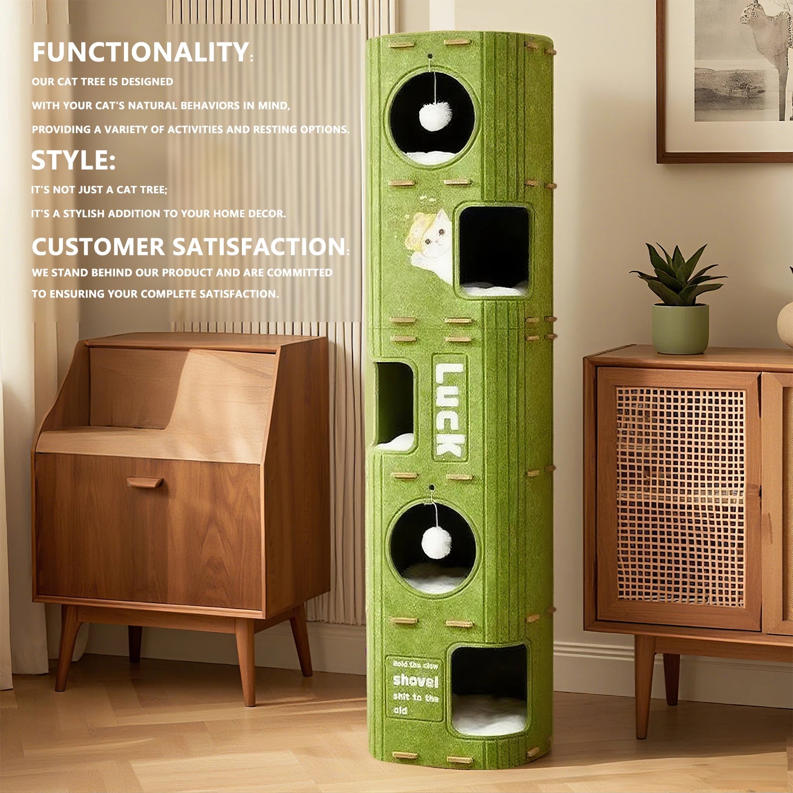 Why cats love it — They get three levels to explore, scratch, and perch, plus private caves to curl up in and a plush bed for year-round comfort. The design encourages active play and rest in one all-season pet center.
