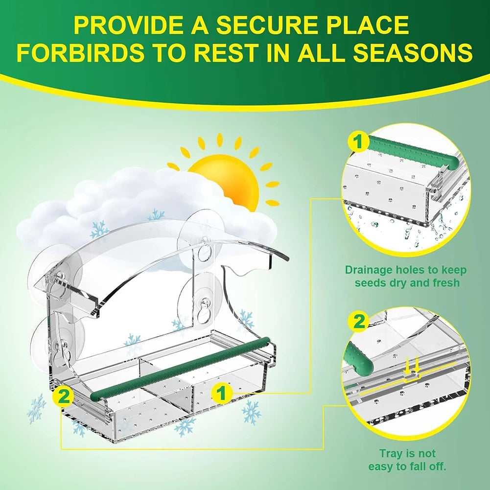 Acrylic Window Bird Feeder With 4 Suction Cups For Outdoors